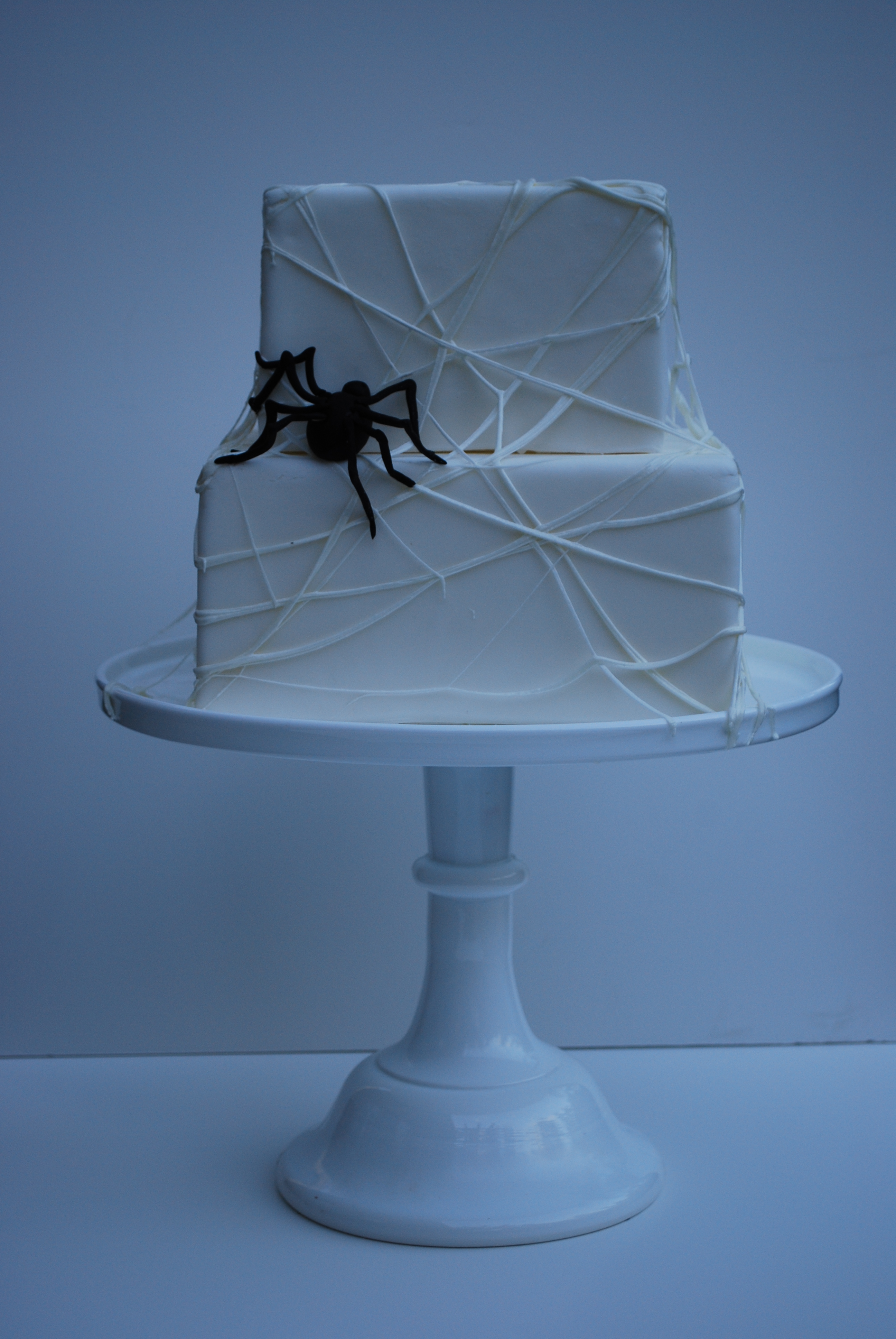 Modeling chocolate spider, fondant cover and marshmallow spider web.