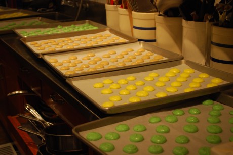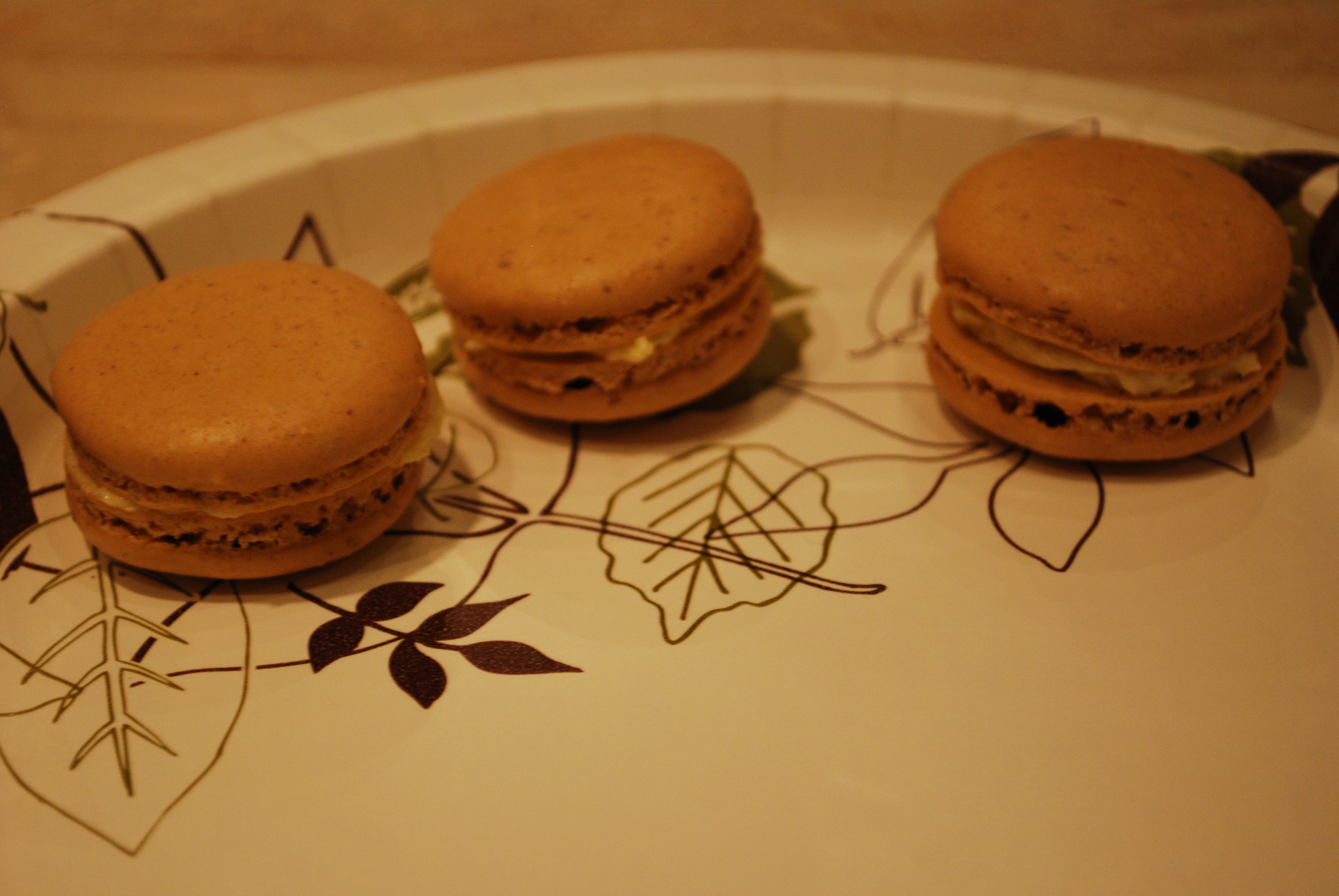 I always wondered how could I make such beauties. I see all the time at birthday parties, websites and stores. I decided taking a class called Mastering Macarons!! 🙂 It was so much fun. We were divided in 4 groups. Each group had 4 people. My group was in charge of Hazelnut Macarons with Praline Buttercream filling!!! WOW!!! That was just the beginning!!! For my first try ever I have to say that I was hooked!!! Yes, I took a class without even knowing how it would taste!!! I just knew I had to take that class and discover for myself. It was so much fun and my group had fun and very nice ladies working together.  At the end we had the chance to try the 4 flavors and take back home a plate full of this heavenly goodies!!! I have to say that I had my share of sugar for the whole week and I was definitely a very happy person yesterday!!! They are delish and fabulous looking. I have to thank Melody Brandon for starting to make them and induce my curiosity to go and try myself. She makes the most beautiful Macarons. I still have to stop by her shop Sweet and Saucy in Newport Beach and try hers and all the other goodies!! Can’t wait to start making them. The other flavors were: Banana Macarons with banana custard cream, pistachio Macarons with chocolate ganache and chocolate Macarons with salted caramel. The ones I made I hope you can tell but if you can’t a little hint they are light brown. I love taking classes and I am so lucky I can go once in a while to take something new, fun and delicious!!!