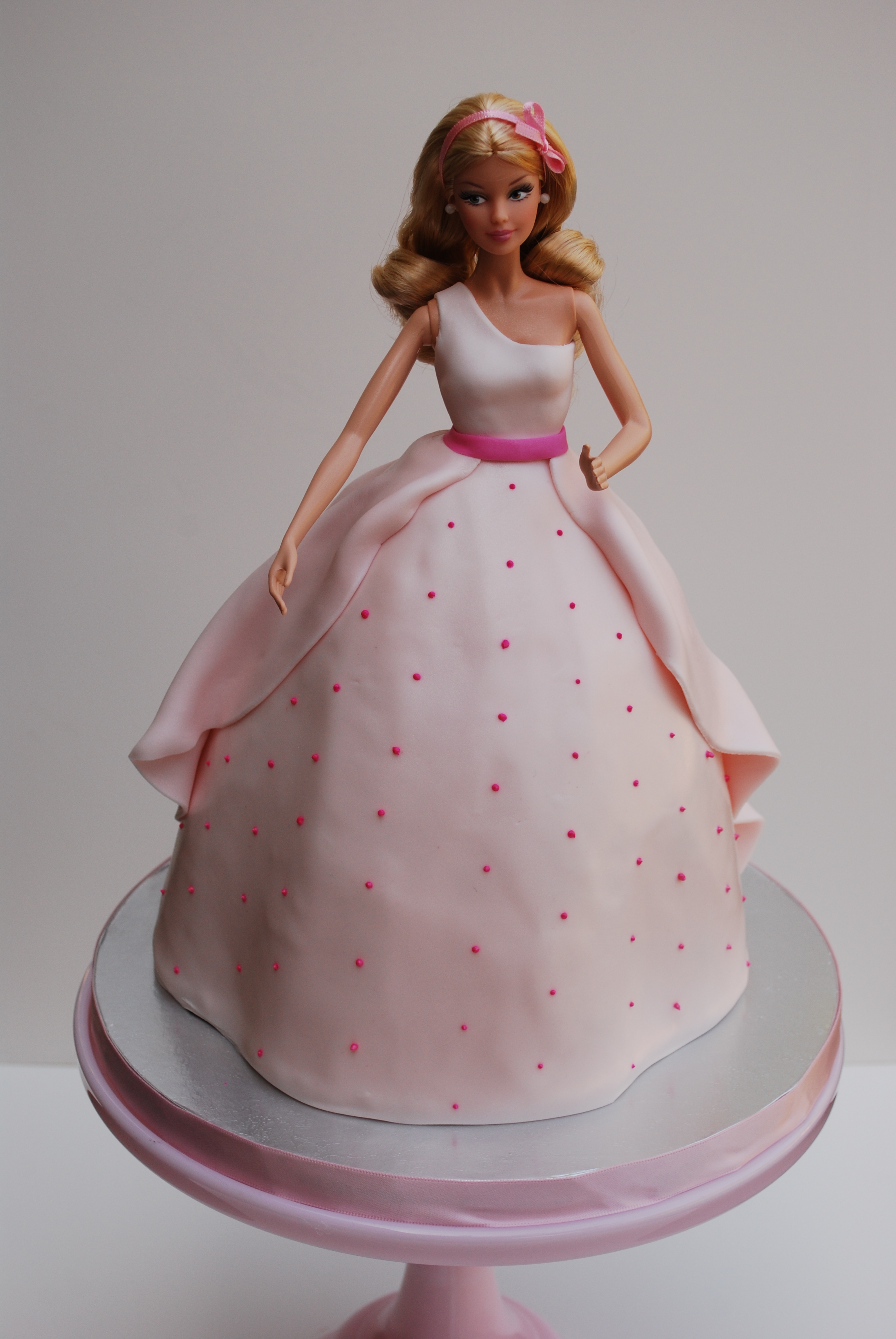 This cake was fun and different to make. The dolls were carved in 8 alternating layers of white and blue cakes with buttercream filling. Their dresses were very shiny with lots and lots of luster dust! Too bad the picture doesn’t show well the shimmer! I never made a doll Cake with 2 dolls before sharing the same dress. So it was a experiment that worked really well I would say! The priceless jaw dropping of the 2 year old birthday girl not understanding if was a gift, a toy or a cake when I was delivering it made my day! I would say it is all of those above with lots of love and dedication put into it! I love to make doll cakes and I hope I can keep having them as orders!